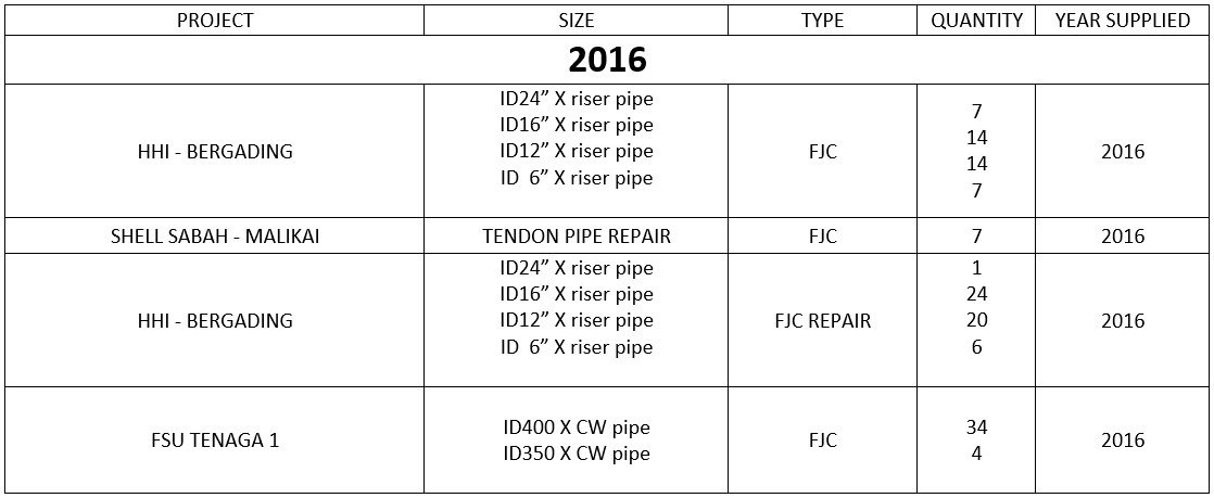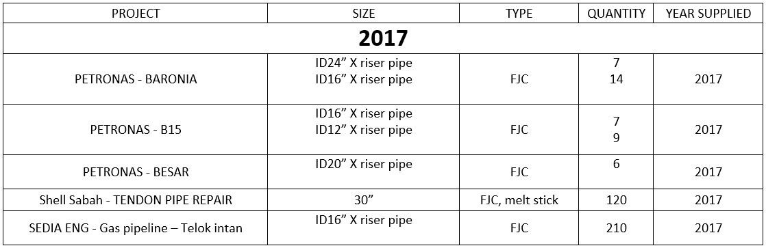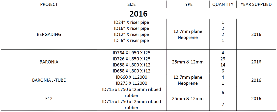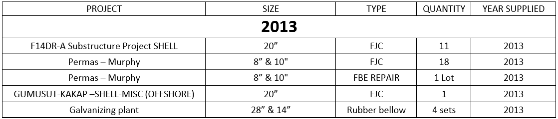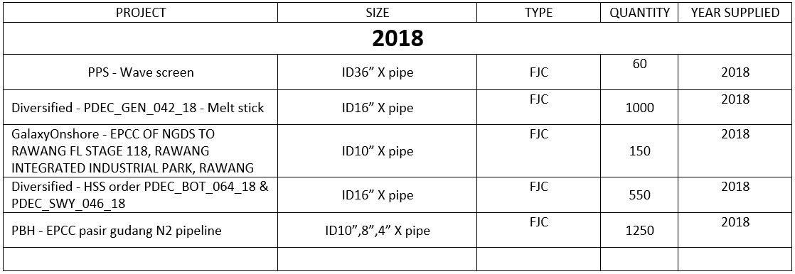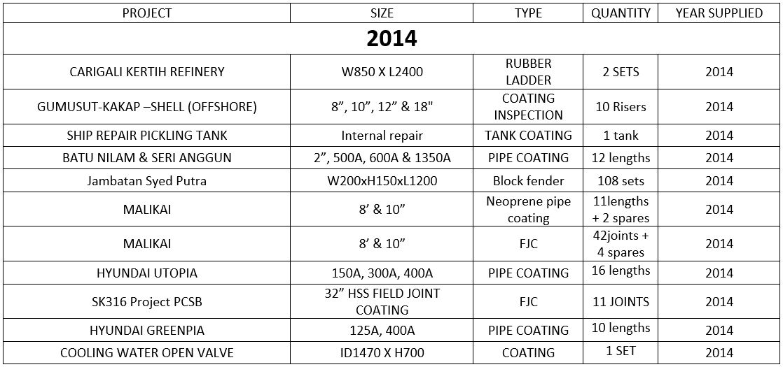 SUPPLY OF ON-SITE INSPECTION, HSS, FBE REPAIR & RUBBER SLEEVE COATING ON SITE FIELD JOINT FOR ONSHORE & OFFSHORE PROJECTS, MARINE FENDERS AND RUBBER PRODUCTS.